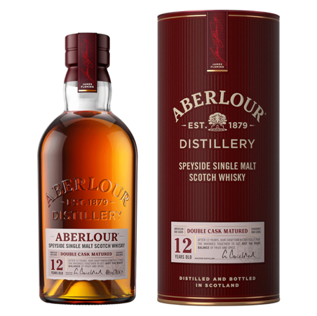 Aberlour 12 Year Old is a meticulously crafted Speyside single malt whisky known for its rich flavor profile. Matured in a combination of traditional oak and sherry casks, it offers a harmonious blend of sweetness and spice. The aroma presents inviting notes of dried fruit, chocolate, and spice, leading to a smooth palate featuring hints of toffee, caramel, and a touch of nuttiness. Aberlour 12 is well-rounded with a satisfying finish that lingers with a hint of oak.